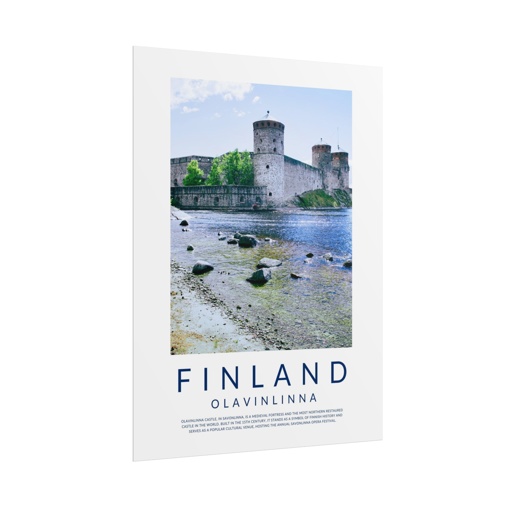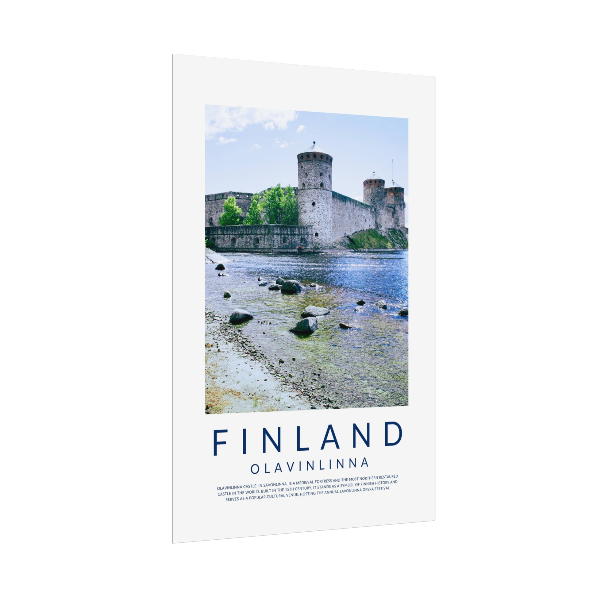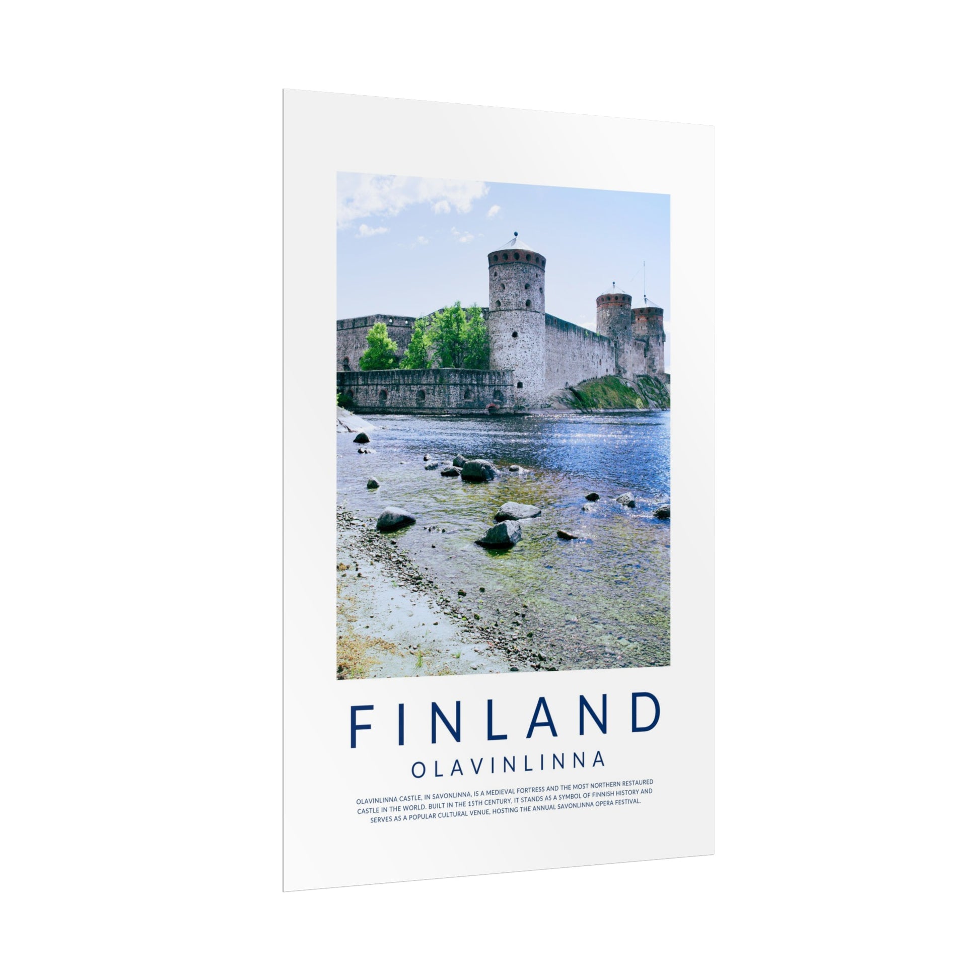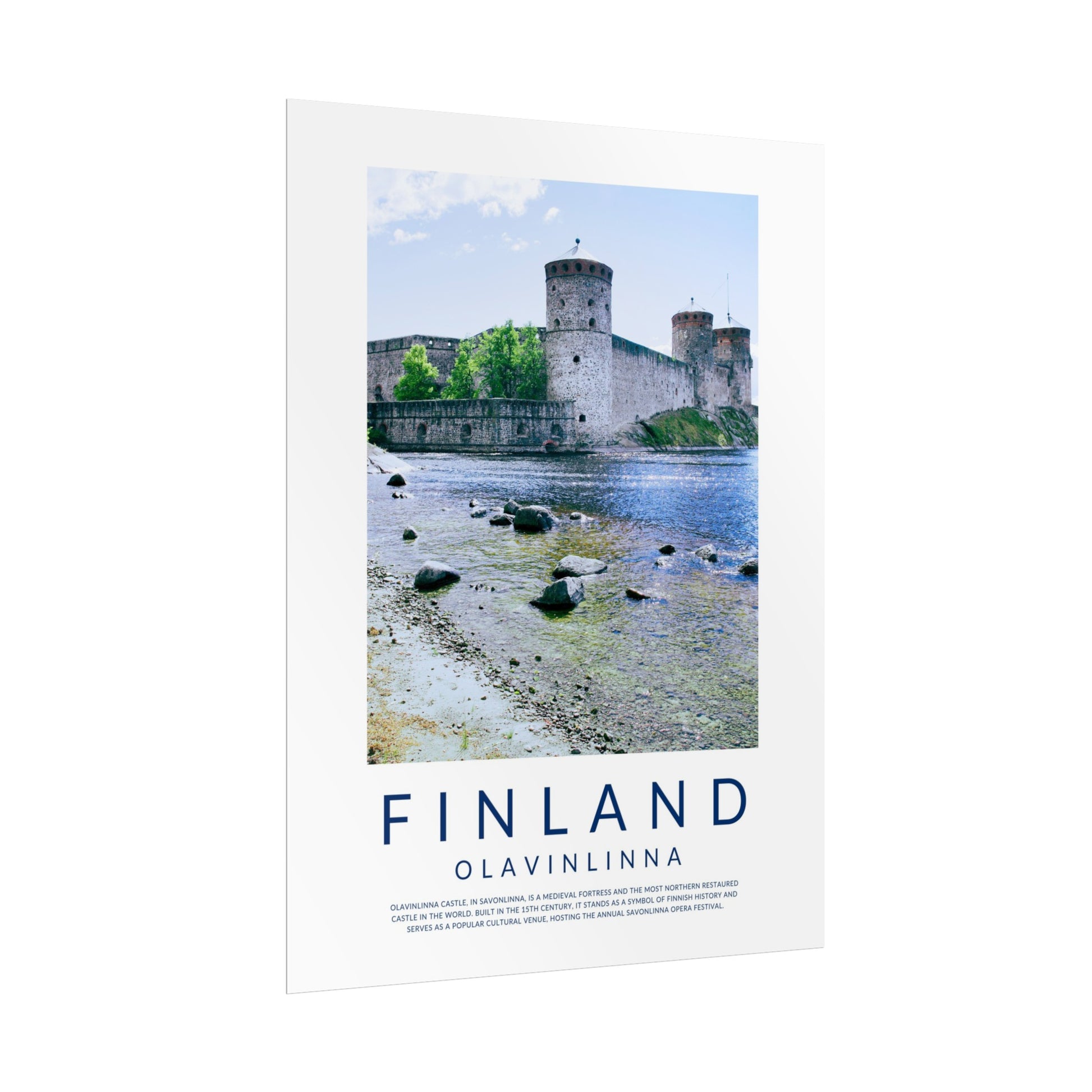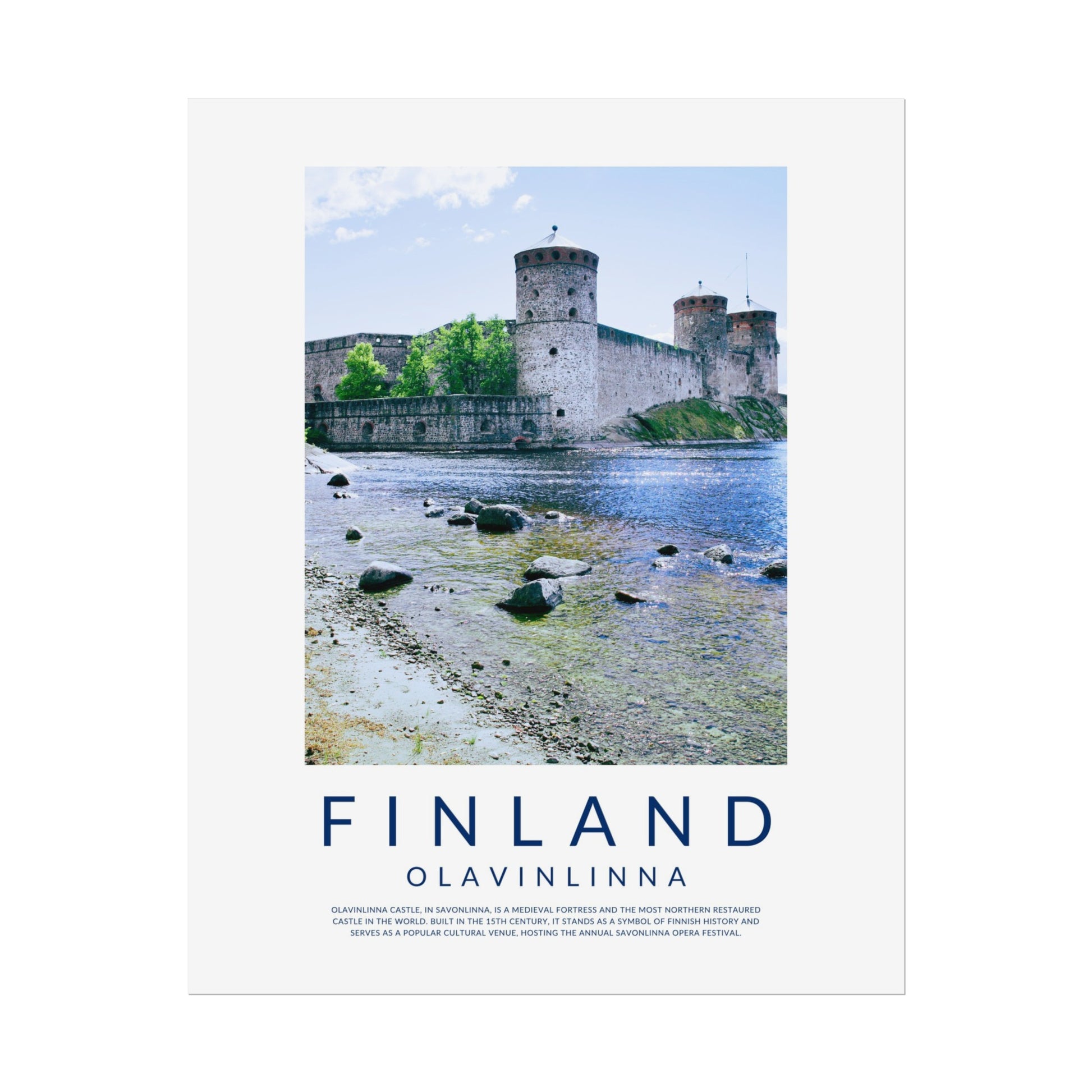 In this poster you'll find a beautiful photo of Olavinlinna Castle in Savonlinna in the summertime and a short description of the beautiful castle in Eastern Finland that nowadays hosts the annual Opera Festival.